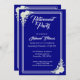 Haga que su celebración de la jubilación destaque con nuestras invitaciones al Elegante Partido de la Jubilación Femenina. Estas hermosas tarjetas presentan un entorno tranquilo y azul con un clásico borde triple de línea blanca y exquisitas rosas blancas en las esquinas. El guión elegante para "Fiesta de Jubilación" y el sencillo tipo de letra para los detalles hacen que la personalización sea fácil y elegante. Perfecto para eventos familiares y corporativos, estas invitaciones también ofrecen un espacio en la parte trasera para cualquier información adicional. Celebra un hito con la combinación perfecta de elegancia.