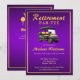 Invitación Jubilación Elegante Tema Golf Cart Purple Gold