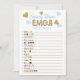 Baby Shower Games Nursery Rhyme & Price es la Invitación Correcta DOS juegos de Baby Shower incluidos en la tarjeta de juego "one". Tarjeta de doble cara... tiene "Emoji de rima de guardería" en un lado y "El precio es el bebé derecho" en el otro. El diseño es un divertido PURPURINA dorado y un diseño de corazón azul. Adorable diseño divertido de una ducha de bebé!!! Juego "Piccionario de Emoji de rima de guardería". Un juego de ducha moderno y divertido para los clientes. "El precio es el bebé derecho". Un juego clásico de ducha, entrega las tarjetas de juego y hace que tus clientes adivinen los precios de los artículos para bebés. Si necesita una CLAVE DE RESPUESTA, las respuestas se pueden encontrar en la página principal de mi tienda Zazzle en el medio (ubicado en el lado derecho de la página): https://www.zazzle.com/paperpassiondesigns. ***Muchas gracias a Emojione: El arte de la Emoji es proporcionado por Emojitwo, publicado originalmente como Emojione 2.2 por Ranks.com con aportes de la comunidad Emojitwo y con licencia CC-BY 4.0.***