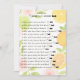 Añade un toque fresco y divertido a tu ducha de novia con este juego de ducha de putas con flores de cítricos. Diseñada con naranjas de acuarelas suaves, flores rosadas y vegetación, esta tarjeta de juego muy bien coordinada combina perfectamente con la celebración temática del cítrico. Ya sea que esté hospedando un fiesta de jardín, un brunch o una ducha de verano, este diseño elegante y lúdico añade encanto y entretenimiento al evento. Personalizable total con las herramientas de edición fáciles de Zazzle: personalice el nombre o las instrucciones de la novia según sea necesario. Ideal para emparejar invitaciones a juego con otras decoraciones de cítricos.
