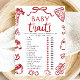 🍅 🍕 Predicte el futuro del pequeño bambino — ¡estilo italiano! En el Baby Shower Game de nuestro grupo Hand Drawn Italian Baby Traits encontrará pizzas con dibujos a mano, bolas de pasta, ramas de olivo, biberones de bebé y verduras de mercado en una paleta roja y blanca clásica, perfecta para una celebración de Ciao Baby llena de amor y risas. ❤️ Los invitados pueden adivinar qué rasgos heredará el bebé, del color de los ojos a la personalidad, lo que lo convierte en un placer personal y desenfadado para los futuros padres. La plantilla editable facilita la concordancia con su rústico brunch de trattoria, reunión de pizza y prosecco o acogedora ducha de granja. Póngalo en pareja con nuestras invitaciones, juegos y decoración de la Hand Drawn Italian Baby Shower Collection para un evento coordinado de bellissima. 🍼 🍷