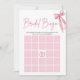 Inicia la fiesta con nuestro Juego de Bingo para Despedida de Soltera con lazo rosa Ella está haciendo el nudo. Esta divertida actividad añade un elemento entretenido e interactivo a tu celebración. Los invitados amarán jugar bingo con un encantador tema de lazo rosa, lo que hará que la experiencia de la despedida de soltera sea memorable y agradable.