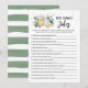 Compra esta tarjeta editable y disfruta de un juego de chistes de Baby Shower de alta calidad para tu evento. Baby Shower, actividades de revelación de género. Diseño unisex de cervecería en verde sabio.