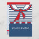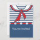 Naves ahoy para un muchacho de recién nacido con este diseño adorable. Marina de guerra y juego de marinero blanco con rojo y no manual y el lazo, y botones lindos. Texto adaptable. ¡Invitaciones de la fiesta de bienvenida al bebé, gracias las postales, los botones, los ornamentos del recuerdo, los pegatinas y más! Original de PinkInkArt.