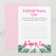 Este juego de memoria de despedida de soltera presenta flamencos acuarela y hojas de palmera tropicales. Utilice esta plantilla para editar las fuentes, el color de la fuente y el color de fondo para que se ajusten a las necesidades de su evento. Edite la mayoría del texto. Este juego de despedida de soltera es perfecto para su evento de despedida de soltera tropical, de flamencos y de inspiración veraniega.