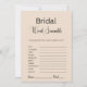 Presentamos nuestra Impresa de Palabras Bridales, una encantadora adición a su rústica y cálida ducha de novia. Este juego cautivador tiene un fondo de color marrón almendra, decorado con un elegante texto gris y negro, creando un diseño visualmente agradable que completa perfectamente el ambiente acogedor y acogedor de la ducha. La portada muestra orgullosamente el título "Palabras de novia rapeadas" en un tipo de letra elegante, acompañado de instrucciones concisas y fáciles de seguir, lo que garantiza un comienzo sin fisuras del juego. En el interior, los huéspedes se embarcarán en un reto interesante que pondrá a prueba sus habilidades de vocabulario de novias. Con 10 palabras cuidadosamente revueltas, van a desentrañar y descifrar los términos relacionados con las novias, experimentando un delicioso viaje de diversión y competencia amistosa. El diseño está cuidadosamente diseñado, proporcionando un amplio espacio para que los participantes escriban sus nombres y hagan un seguimiento de sus puntuaciones, fomentando un juego interactivo y atractivo. Para añadir un toque personal, la parte posterior de la imprimible muestra el nombre de la futura novia, la fecha de la ducha y los nombres de los amables anfitriones. Además, se proporciona una clave de respuesta, que garantiza una puntuación conveniente y hace que el juego se ajuste sin esfuerzo. Nuestra estampable riña de palabras nupciales es el lugar perfecto para su rústica y cálida ducha de novias, añadiendo un toque extra de encanto y placer a la celebración. Ya sea que busques entretener a tus invitados, crear recuerdos preciados o simplemente infundir tu evento con un sentido de la intimidad, este juego es absolutamente imprescindible. Con su diseño cautivador, detalles reflexivos y un atractivo juego de palabras, nuestra imprimible pelea de palabras entre novias será sin duda el punto culminante de su inolvidable ducha.