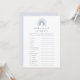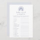 Esta tarjeta de juego de la colección Rowan es perfecta para una simple ducha de bebé o para rociar un bebé. Este bonito diseño minimalista presenta un arco iris blanco y azul claro único y es perfecto para primavera o verano. LLAVE DE RESPUESTA DE CACHÉ DE CACHORA: 1.Diaper 2.Bassinet 3.Botella 4.Cárter 5.Pacificador 6.Cambio de tabla 7.Animal relleno 8.Stroller 9.Pato de goma 10.Masa 11.Tether 12.Fórmula 13.Alta Silla 14.Móvil 15.Termómetro