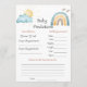 Pida a sus invitados que rellenen una tarjeta de predicciones de bebé a la entrada de su baby shower con el tema Aquí viene el hijo. Será divertido para los invitados y los futuros padres disfrutarán leyendo las respuestas después de la celebración.