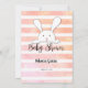 Disfrute jugando a este juego de ducha de bebé Nursery Rhymes en un fondo de rayas de color blanco, coral y suave. Conejo lindo, blanco, conejito en la parte posterior con plantillas creadas para usted.