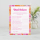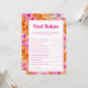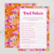 Diviértete en tu shower de bebé con esta divertida tarjeta de juego, que presenta vibrantes flores rosadas y naranjas y detalles editables. Personalízala fácilmente utilizando las opciones de "personalizar" y "editar con la herramienta de diseño".