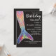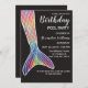 Esta bonita y divertida invitación a la fiesta de cumpleaños es la elección perfecta para una Fiesta de billar divertida y emocionante para la chica de cumpleaños y sus amigos. El diseño presenta una bonito y majestuosos colores arcoíris dibujados a mano ilustrados con la cola de sirena sobre el fondo negro superior. La cola está pintada a mano de rosa, azul marino, color púrpura, balanzas de sirena de color acuático con delineado en blanco. Este diseño artístico, moderno y adorable hará sonreír a su hija y a sus invitados.El color del fondo y del texto está definido pero se puede cambiar pulsando sobre el botón "personalizar".