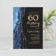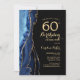Invitación a la fiesta de cumpleaños número 60 en azul marino, negro y oro. Elegante diseño moderno con acuarela azul real agate mármol fondo geodésico, oro falso purpurina y letra de escritura tipográfica. La carta de invitación de moda es perfecta para una elegante celebración del cumpleaños de las mujeres. Invitaciones Zazzle impresas o una plantilla imprimible digital de descarga instantánea.
