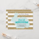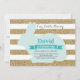 Invitación de primer cumpleaños de conejo. Niño o Chica. Invitación al Día del Huevo de Pascua. Conejo. Huevos de caza. Aqua Turquesa Verde azulada. Purpurina de oro y fondo de franjas blancas. 1.ª 2ª 3ª 4ª 6ª 7ª 8ª 10ª 11ª 12ª 13ª 14ª, Cualquier Edad. Digital Imprimible. Para una mayor personalización, haga clic en el botón "Personalizar" y utilice nuestra herramienta de diseño para modificar esta plantilla.