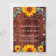 Para una fiesta de cumpleaños número 40 (o cualquier edad). Madera rústica marrón como fondo decorado con girasoles acuáticos, vegetación eucaliptos y hojas doradas. Polvo purpurina de oro falso. Personalice y agregue sus nombres y detalles del boda.