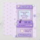 Invitación de cumpleaños de estilo retro con un ilustracion de videojuegos de arcade púrpura pastel combinado con tipografía divertida y elegante con diferentes colores. Puede encontrar más elementos coincidentes de esta colección en nuestra tienda.