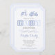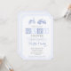 Bloques de alfabeto e imágenes de juguetes vintage decoran estas invitaciones para dar la bienvenida a un bebé.