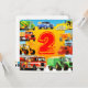 Nueve camiones alrededor del número 2! Mezclador de cemento verde y amarillo, camioneta azul, bulldozer amarillo, camión de naranja, rodillo rojo, tractor verde y remolque, gran camión de bomberos rojo, excavador amarillo y camión rojo de la constructora. Todo tipo de transporte, los grandes camiones que los niños aman! En un fondo azul y amarillo brillante haciendo una invitación o invitación muy colorida y divertida. Perfecto para su camión de bomberos, excavadora, camión o tractor loco de 2 años en su segundo cumpleaños. Maravilloso por la fiesta de cumpleaños temática del Camión de tu hijo de 2 años. Modernas fiestas de cumpleaños, accesorios, favores y regalos para fiestas infantiles y para niños. Todos los diseños y ilustraciones de camiones ©Paul Stickland
