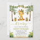 Elegante jungla acuarela animal salvaje Giraffe diseño con follaje tropical verde con confeti dorado y fondo de rayas