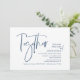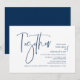 Anuncie y comparta su gusto con el diseño de nuestro moderno tema azul marino (junto con sus padres) tarjeta de invitación a la recepción de la celebración de la salida de bodas. Es ideal para las parejas que han decidido celebrar su mejor día. Con un diseño sofisticado pero lúdico, esta invitación seguramente marcará el tono para un evento inolvidable. La tarjeta de invitación incluye un diseño de escritura moderno y minimalista, añadiendo un toque de elegancia eterna a tu celebración. Diseñado por TeeshaDerrick