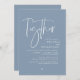 Anuncie y comparta su gusto con el estilo de nuestro moderno diseño de temática azul polvoriento (junto con sus padres) tarjeta de invitación a la recepción de la celebración de la salida boda. Es ideal para las parejas que han decidido celebrar su mejor día. Con un diseño sofisticado pero lúdico, esta invitación seguramente marcará el tono para un evento inolvidable. La tarjeta de invitación incluye un diseño de escritura moderno y minimalista, añadiendo un toque de elegancia eterna a tu celebración. Diseñado por TeeshaDerrick