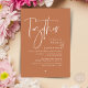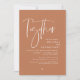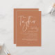 Anuncie y comparta su gusto con el diseño moderno de un tema marrón de cobre (junto con sus padres) con la tarjeta de invitación a la recepción de la celebración de la salida del boda. Es ideal para las parejas que han decidido celebrar su mejor día. Con un diseño sofisticado pero lúdico, esta invitación seguramente marcará el tono para un evento inolvidable. La tarjeta de invitación incluye un diseño de escritura moderno y minimalista, añadiendo un toque de elegancia eterna a tu celebración. Diseñado por TeeshaDerrick