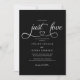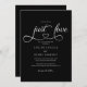 Celebrate your special day with this Nothing Fancy Just Love modern wedding invitation. The design features elegant script typography on sleek black background with a simple heart accent, creating a stylish yet minimal look. Perfect for couples who want a clean, modern, and romantic wedding theme. Ideal for contemporary weddings, elopements, or intimate celebrations.