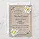 © 2013 Socialite Designs. Nuestro ambiente rústico de yute y nuestra invitación al diseño de margarita blanca son perfectos para cualquier reunión rústica o campestre. Una encantadora combinación de texturas y elementos de diseño femenino para una romántica ducha nupcial. TENGA EN CUENTA QUE LAS FLORES Y EL FONDO DE JUTE SON IMÁGENES QUE SE IMPRIMEN A LA INVITACIÓN Y QUE NO SON REALES. Si necesita AYUDA para personalizar o necesitar productos bodas adicionales con este diseño, póngase en contacto con Socialite Designs.