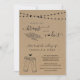 La invitación presenta ilustraciones de kebabs y brindis con cerveza sobre un fondo kraft rústico maravilloso.