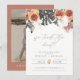 Esta invitación de elopement "nos atamos el nudo" presenta hojas de palma tropicales secas boho y acentos de terracota combinados con una elegante fuente de escritura a mano. Utilice esta plantilla para editar *la mayoría* de la redacción, fuente, colores de fuente y colores de fondo para que coincidan con las necesidades de su evento. Nota: las flores de acuarela *no* son editables