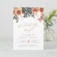 Esta invitación de huida "nos atamos el nudo" presenta hojas de palma tropicales secas boho y acentos de terracota combinados con una elegante fuente de letra manuscrita. Utilice esta plantilla para editar *la mayoría* de la redacción, fuente, colores de fuente y colores de fondo para que coincida con las necesidades de su evento. Nota: las flores de acuarela *no* son editables