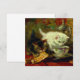 Tarjeta con la pintura al óleo de Henriëtte Ronner-Knip High Tea (1821-1909). Un gatito blanco esponjoso bebe de una taza de té y un mantel cuelga una repostería en una bandeja de té. Un regalo perfecto para los amantes del gato y del romanticismo.