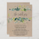 Esta carta de invitación a la fiesta de compromiso "ella dijo que sí" es perfecta para un evento rústico. El diseño presenta un marco de hojas verdes y vegetales vegetales botánicos sobre un fondo falso de papel kraft. El reverso muestra una corona de flores de un país a juego con las palabras "ella dijo que sí" en un precioso y moderno tipo de caligrafía. Nota: Esto no está impreso en papel kraft real. Es un gráfico de alta calidad hecho para parecer un papel kraft.