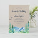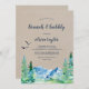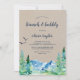 Este brunch kraft Rocky Mountain y su animada invitación son perfectos para una ducha de boda al aire libre. El diseño presenta un paisaje salvaje pintado de azul y verde con pinos acuarelas, pájaros y montañas sobre un falso fondo de papel kraft claro. Nota: Esto no está impreso en papel kraft real. Es un gráfico de alta calidad hecho para parecer un papel kraft.