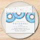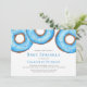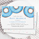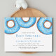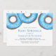 Invitar a la familia y amigos a la rociada de su bebé con esta encantadora invitación. Cuenta con donuts de color azul acuático y tipografía elegante. La parte trasera está decorada con rociadores de colores. Personalizable fácil. Acuarela original © Michele Davies.