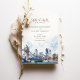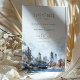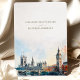 Anuncie su día especial con esta encantadora tarjeta "Save the Date", que incluye una representación de las acuarelas de los emblemáticos monumentos de Londres. El diseño muestra las Casas del Parlamento y el Big Ben, junto con una vista detallada del Tower Bridge y el moderno paisaje londinense, incluyendo el Gherkin. Los suaves tonos azules y grises del cielo se mezclan con sutiles toques de color rojo y ámbar, creando una perfecta mezcla de estilos clásicos y contemporáneos. La elegante tipografía, que combina fuentes modernas con un guión delicado, añade sofisticación, haciendo de esta tarjeta el lugar ideal para parejas que planean una boda romántica y atemporal en Londres.