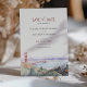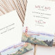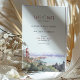 Celebre sus próximos nupcias con la elegancia del paisaje de San Francisco. La invitación Save the Date, que ha sido muy bien elaborada, presenta una delicada acuarela que representa el icónico puente Golden Gate, con el telón de fondo de las famosas colinas de la ciudad y la tranquila bahía. La suave paleta de azul ceruleño, rosa rubor y beige arenoso crea un ambiente romántico y sereno, ideal para anunciar tu día especial. Las suaves pinceladas evocan una sensación de fantasía, mientras que la sofisticada tipografía comparte con elegancia los detalles de tu evento. Ideal para las parejas que aprecian el encanto y la vibrante cultura de San Francisco, esta invitación es seguro que marca el tono para un boda inolvidable.