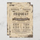 Características del este diseño del contemporáneo un fondo beige y marrón del grunge complementado por el trabajo rústico de la voluta de la tipografía y del acento. Hay un montón de texto adaptable para que usted añada su información del boda. Esta invitación del boda tiene una tarjeta a juego de la respuesta de RSVP y se diseña con un tema rústico en mente.
