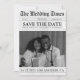 Esta foto en blanco y negro de la invitación Save the Date evoca la elegancia eterna de un periódico vintage. La imagen de la pareja es llamativa y se combina con un diseño minimalista, depurado, que combina nostalgia con sofisticación moderna. Una manera perfecta de anunciar su día especial con estilo y gracia.