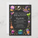 ¡Esta bruja se está volviendo loca! Celebra nuestra mágica novia con una invitación de soltera con un borde acuarela de cócteles, un gorra de brujas, una bola de cristal y una escoba con un fondo negro adormilado. ¡Ideal para una noche de excursión!