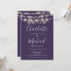 Con luces de cadena de bonito y nombres de estilo, esta elegante invitación a la boda púrpura se puede personalizar con toda la información especial del día de la boda al revés, incluyendo su RSVP, alojamiento y detalles adicionales. Diseñado por Thisisnotme©