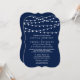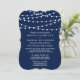Sencillo pero elegante, las luces de cuerda de la colección de bodas azul marino son un diseño impresionante con bonitas luces de cuerdas blancas colgadas en un fondo azul marino, perfecto para cualquier celebración boda moderna. Estas invitaciones pueden ser personalizadas para su ocasión especial y harían la invitación perfecta para su boda, ducha de novia, fiesta de compromiso, fiesta de cumpleaños y muchas otras ocasiones especiales. Agregue la redacción de su personalizado a este diseño utilizando los cuadros "Editar esta plantilla de diseño" situados en la parte derecha del elemento, o haga clic en el botón azul "Personalizar" para organizar el texto, cambiar los tipos de letra y los colores y añadir información o imágenes adicionales a este diseño.