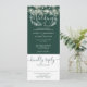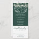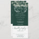 Invitación de boda todo en uno con luces de cuerda de bonito y tipografía elegante en un fondo verde esmeralda. La invitación incluye una tarjeta RSVP que se puede cortar y detalles de la información de los invitados. Diseñado por Thisisnotme©
