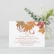 Elegante boda con temática de otoño para el diseño de la invitación a cenar. Nuestra papelería boda "Caídas" presenta hojas de otoño saturadas y remolinos de desplazamiento. Los colores incluyen naranja, cobre, marrón, rojo y oro.