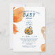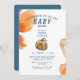 Flores naranjas acuarelas y calabaza azul y naranja. Calabaza L'il en el camino. Invitación de Baby Shower.