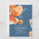 Flores naranjas acuarelas y calabaza azul y naranja. Calabaza L'il en el camino. Invitación de Baby Shower. Neutral.
