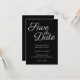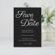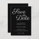El texto de la tipografía Save the Date es un elegante y encantador estilo caligráfico contemporáneo en blanco contra negro sólido. Añade tu foto de compromiso a la parte trasera si quieres. Personalizar el color de fondo si quieres. Esta elegante boda caligráfica, salvo la invitación de fecha, se puede encontrar en una variedad de antecedentes decorativos.