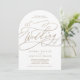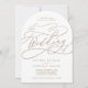 Esta romántica caligrafía dorada florece con la invitación a la boda en arco es perfecta para un simple boda. El moderno diseño clásico presenta vistosos remolinos y florituras con una preciosa y elegante tipografía de Relieve metalizado de oro con chaflán a mano con letras falsas y oro. Nota: Este diseño no tiene Relieve metalizado oro real. Es un gráfico de alta calidad hecho para parecer un Relieve metalizado dorado.