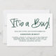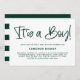 It's a Boy! Una pequeña y sencilla invitación a la ducha de bebé, con una caligrafía moderna y bonita de color verde con rayas. Personalice agregando nombres, fecha, hora, lugar y otros detalles. Esta invitación a bañarse en una ducha de bebé blanca y verde es perfecta para cualquier temporada y tema.