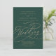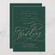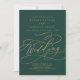 Esta caligrafía verde romántica en la tarjeta de invitación a la boda es perfecta para un boda simple. El moderno diseño clásico presenta vistosos remolinos y florituras con una preciosa y elegante tipografía de Relieve metalizado de oro con chaflán a mano con letras falsas y oro. Guarde el papel incluyendo los detalles en la parte posterior de la invitación a la boda en lugar de en una tarjeta separada. Incluya también la información de RSVP si su invitado responderá electrónicamente (opcional). Nota: Este diseño no tiene Relieve metalizado oro real. Es un gráfico de alta calidad hecho para parecer un Relieve metalizado dorado.