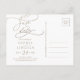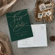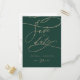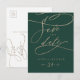 Esta caligrafía romántica verde salva la postal del anuncio de fecha es perfecta para un simple boda. El moderno diseño clásico presenta vistosos remolinos y florituras con una preciosa y elegante tipografía de Relieve metalizado de oro con chaflán a mano con letras falsas y oro.